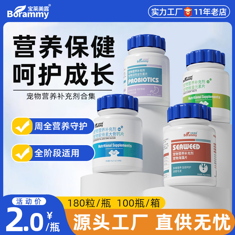 宝莱美露犬微量元素180錠/瓶猫カルシウム錠ビタミン錠健康食品ペット益生菌