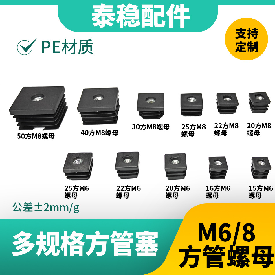 メーカー直供pe方管鋼管プラスチックプラグm 6/m 8方管ナットプラグテーブル椅子調整キャスタープラグ