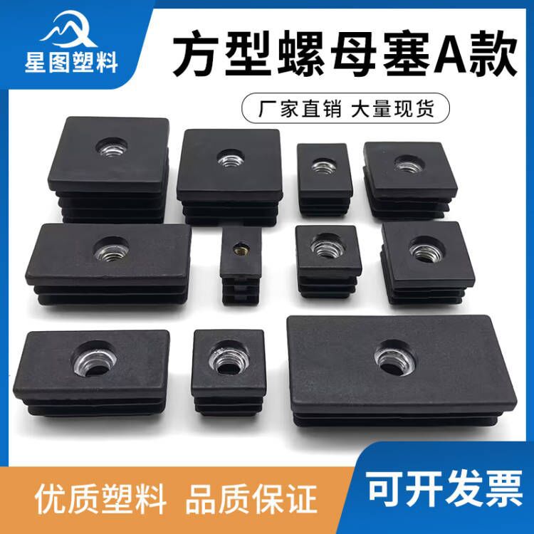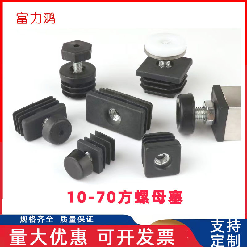 厂家批发1-50mm正方形螺母塞方管管塞塑料堵头胶塞螺母调平螺母脚