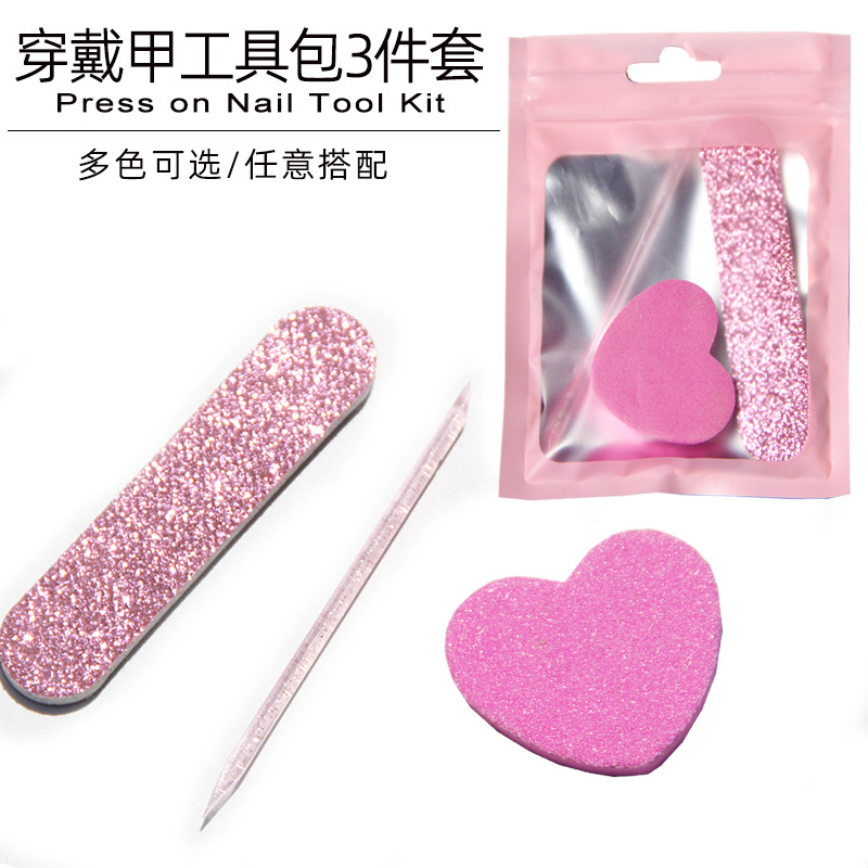 甲を身に着けている工具の3つのセットの水晶の棒のハート型のスポンジのネギの粉の爪やすりのネイルツールの材料はセットを包みます。