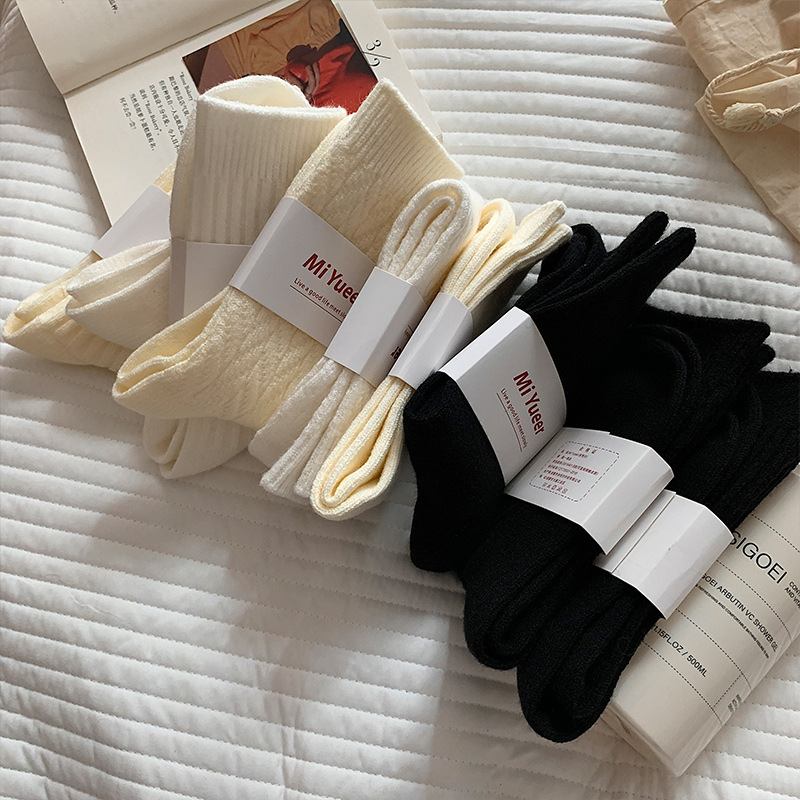 カシミヤ靴下を厚くして冬の保温靴下をシンプルにした純色の中筒靴下日本の靴下を積むウール靴下子供秋冬