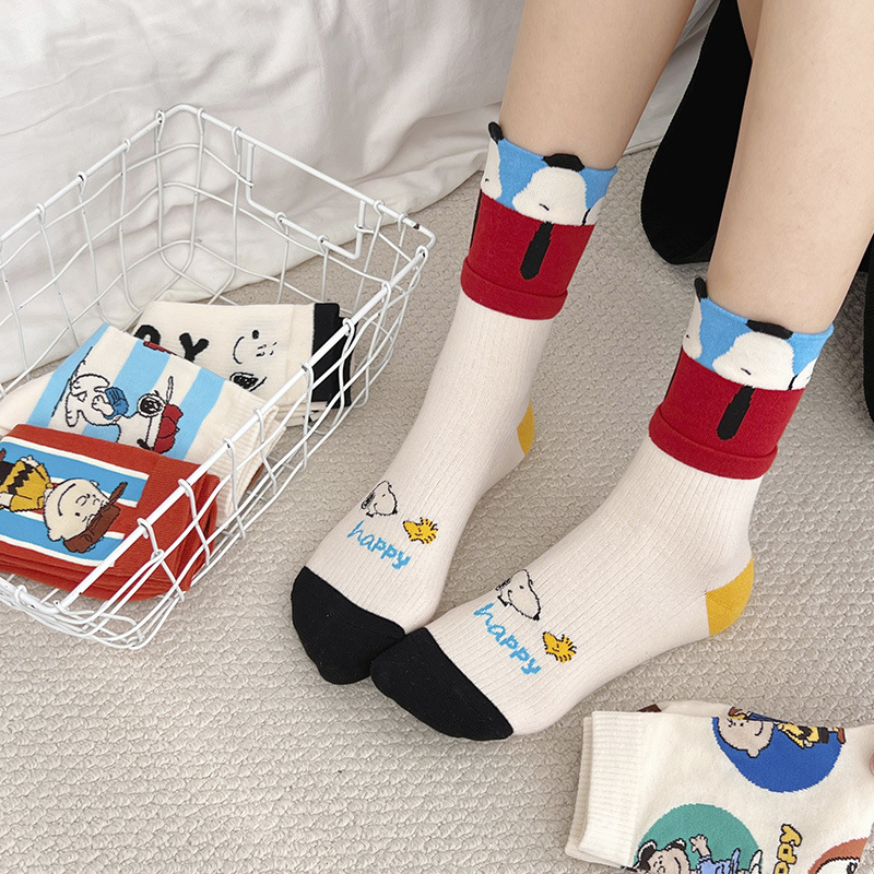 日系可爱卡通动漫中筒袜少女学院风春秋纯棉袜甜美潮酷字母短袜子