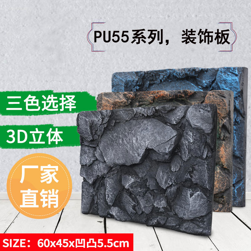 水槽背景板3d立体pu背景板青龍石造景家庭装飾壁水槽亀筒60*45