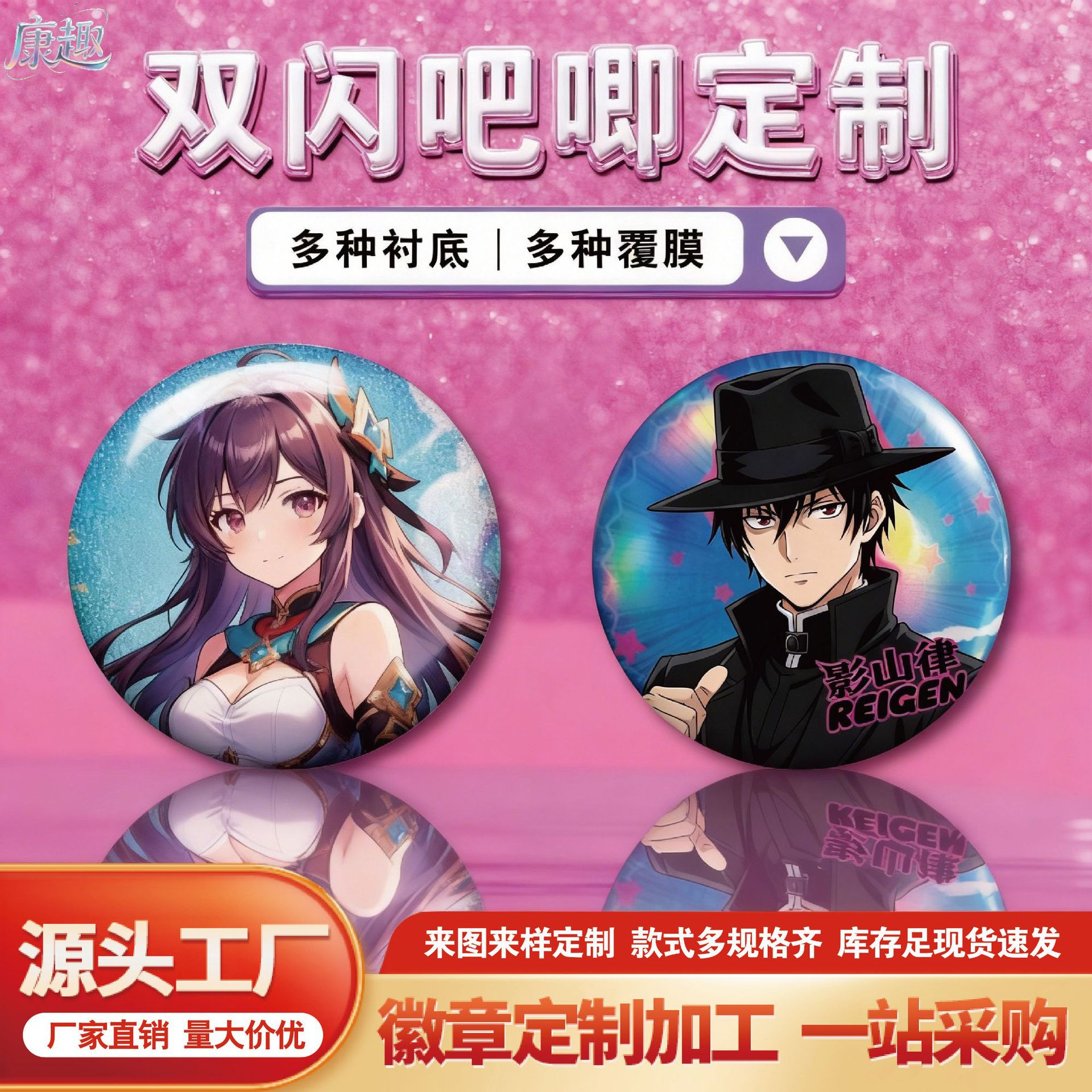 双闪吧唧定制马口铁徽章明星卡通动漫胸章二次元周边异形谷子定做