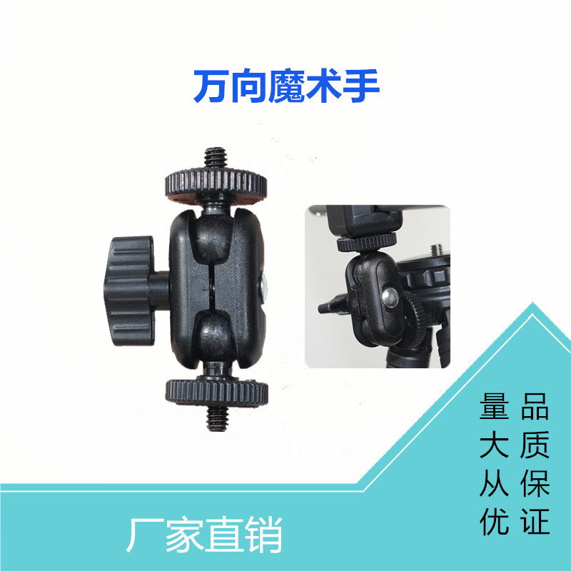 使用方法:把固定夹安装在三脚架/直播支架/自行车/摩托车的手把上,配套闪光灯/LED灯具/手机/运动相机/单反/DVR/数码相机/行车记录仪可以通过自身有的固定螺丝孔位旋紧在支架上及配套转接头/夹子使用,安装时请把数码相机的手挽带套在车把上,预防相机架与相机脱落而数码相机不会掉到地上遭受损。