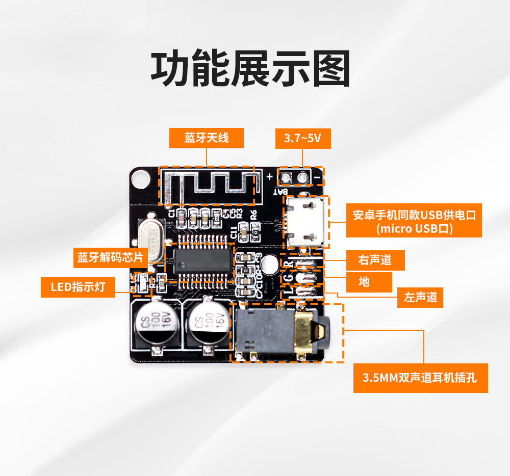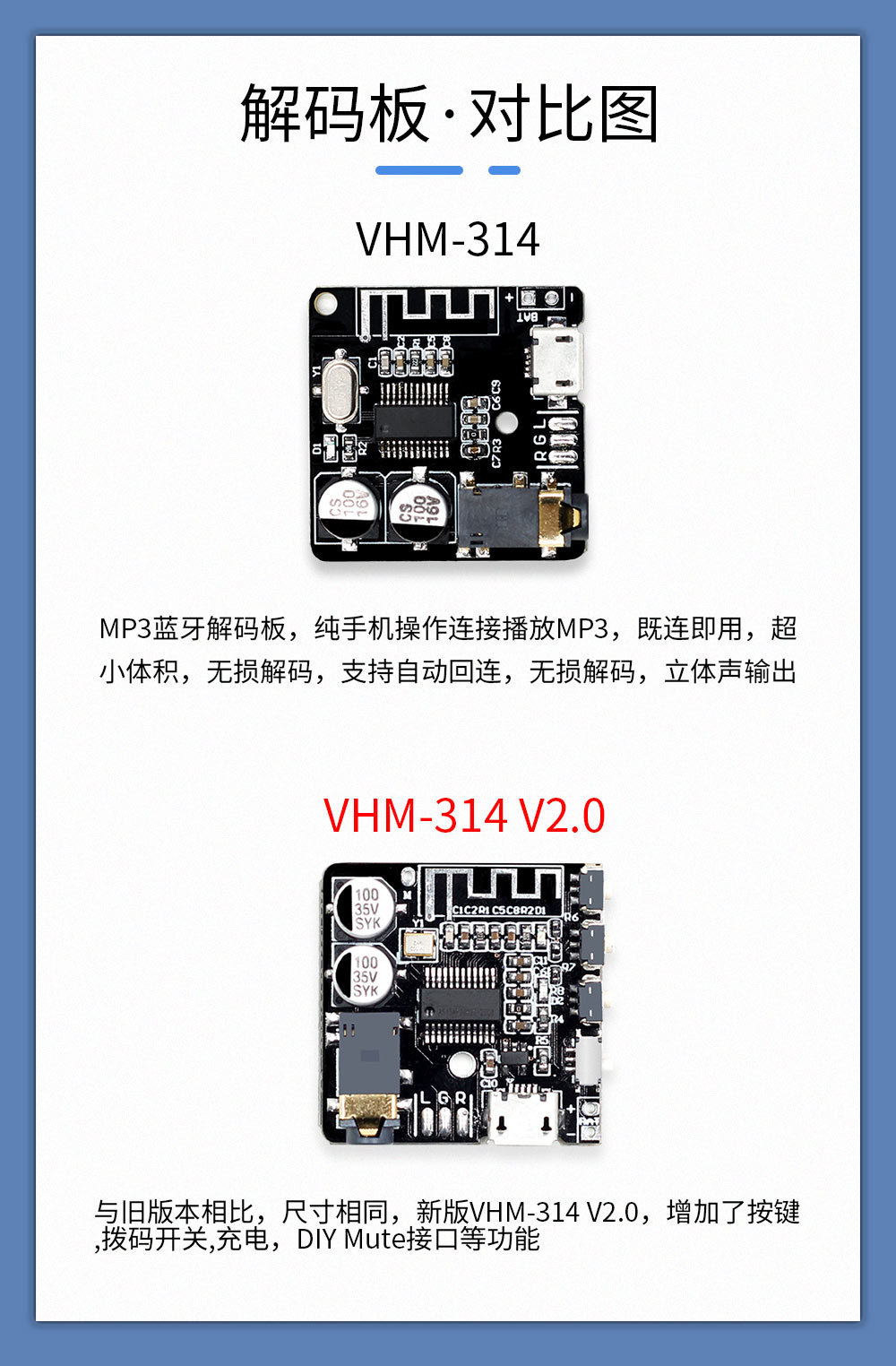 VHM-314 蓝牙解码板MP3 无损车载音箱功放改装蓝牙4.1/5.0电路板