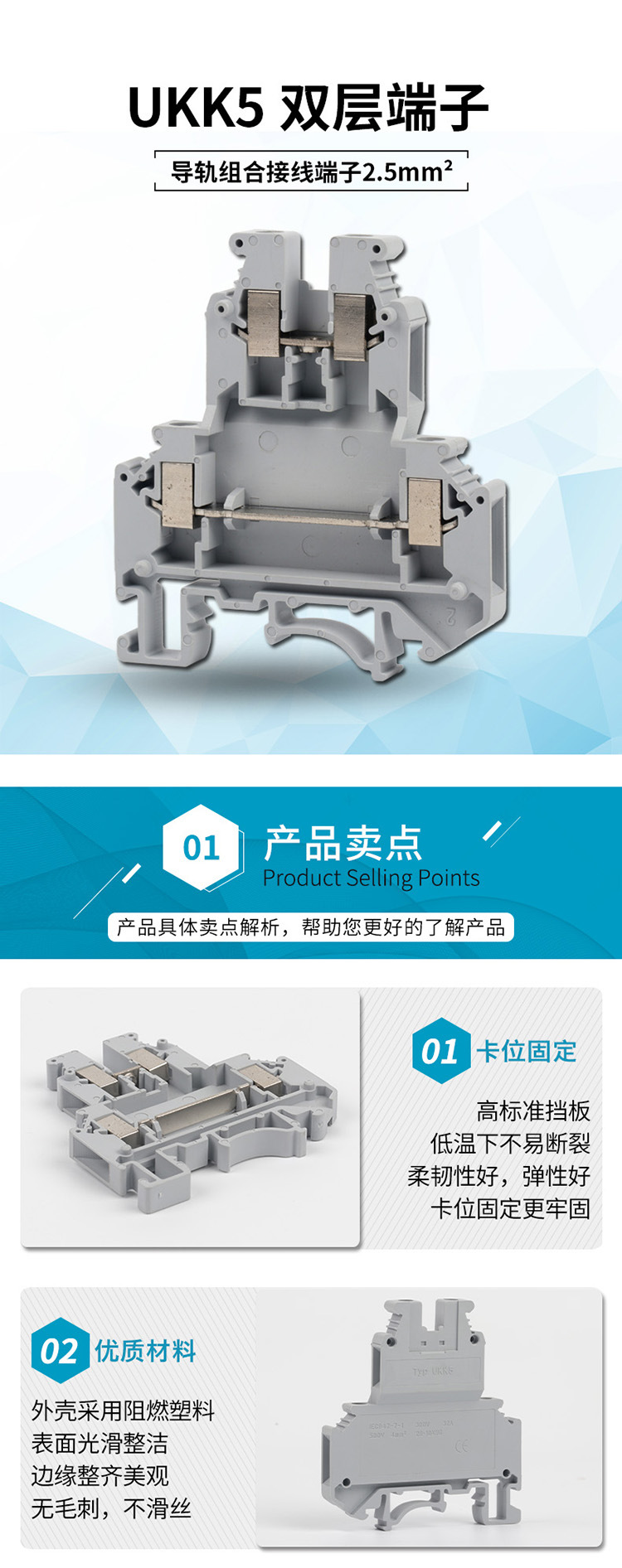 メーカーはukk 5レール式二重配線端子台UK双進二重端子ukk 3を供給しています。