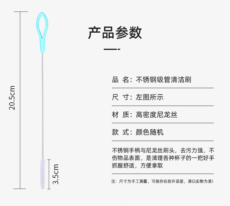 尺寸:毛的直径6mm 总长度20.5cm,刷毛长3cm。