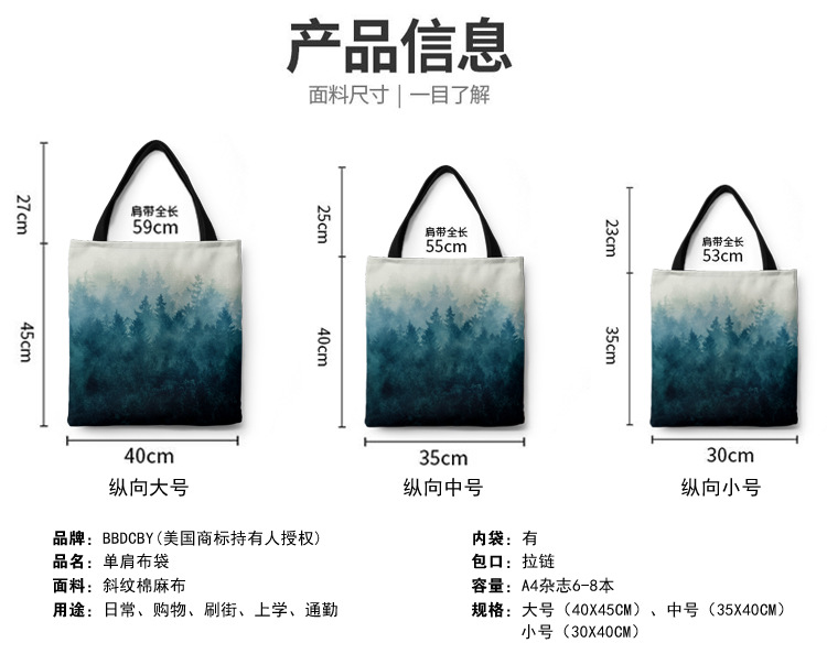 山林キャンバスバッグ環境保護ショッピングバッグ手提げ袋ショルダーバッグ