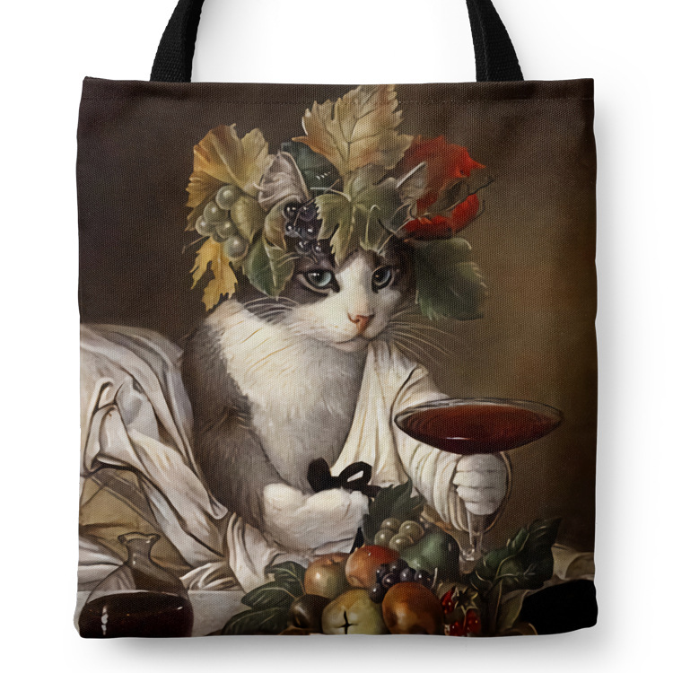 油絵酒神猫キャンバスバッグ日本式布袋レジ袋手提げ袋ショルダーバッグ