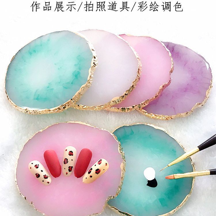 日本の新型ネイルアートの金辺は瑪瑙の玉盤の樹脂のパレットをまねて撮影します。