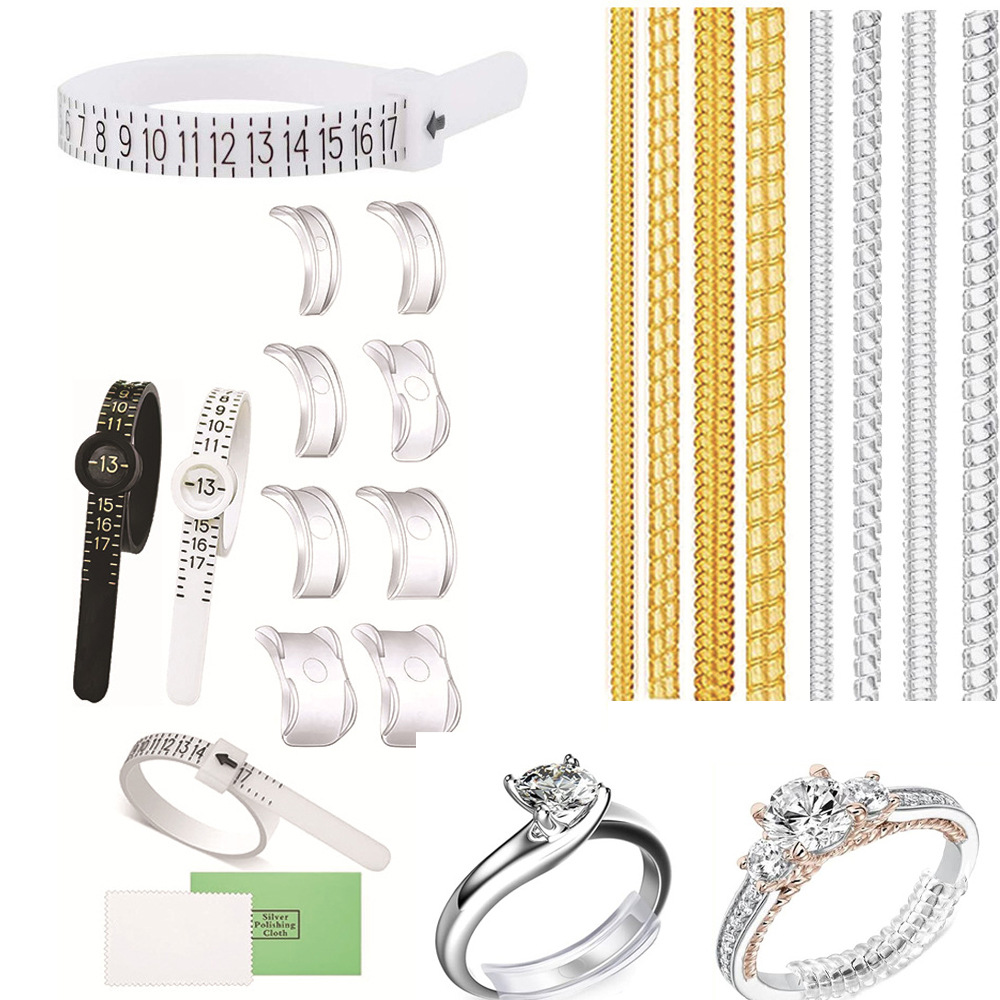 クロスボーダーリングアジャスター、インビジブルソフトリングスペーサー、8点セット、小型アジャスターダイヤモンドリングジュエリー銀磨きクロス