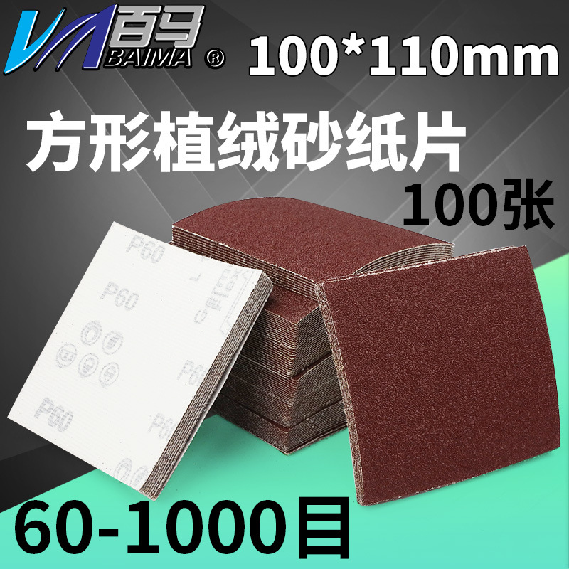 百馬正方形サンドペーパー100*110mm角形サンドペーパー植毛サンドペーパー異形サンドペーパー研磨機サンドペーパー
