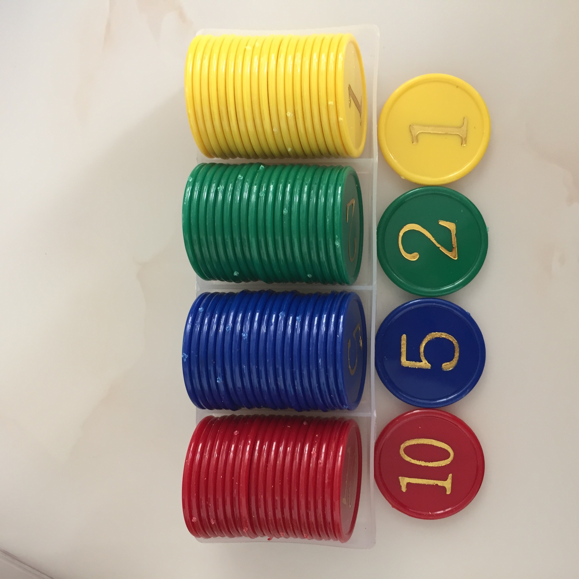 プラスチックのチップの貨幣の教具のカラーの空白の小さい円盤の学生の幼稚園の奨励貨幣のポイントの貨幣の子供のおもちゃの貨幣