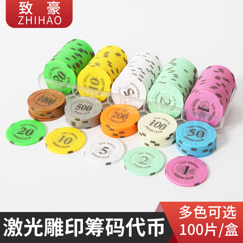 円牌学習通貨ゲーム通貨プラスチック箔押し四色デジタルテキサストランプチップセット棋牌室プラスチック通貨