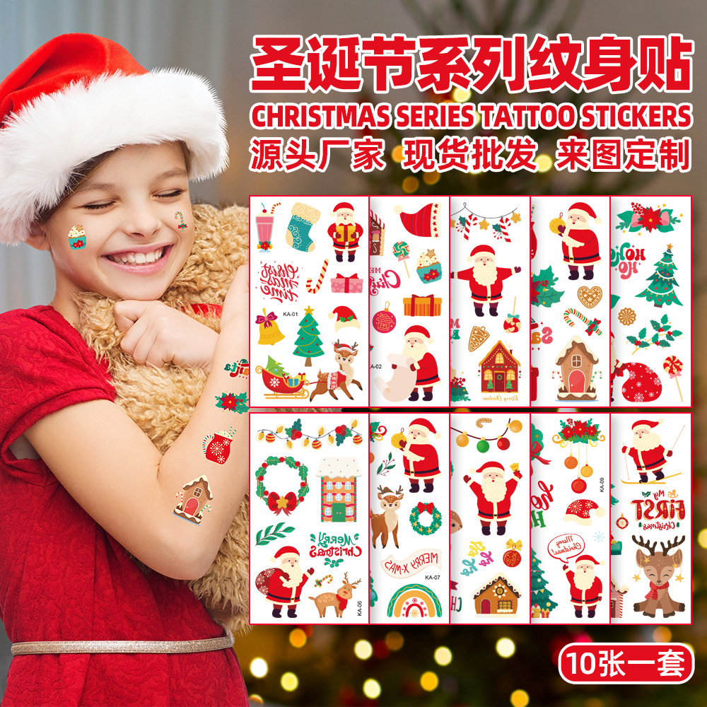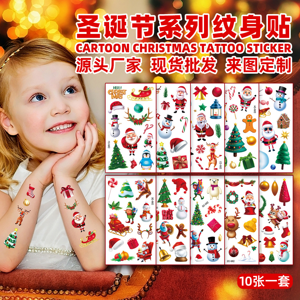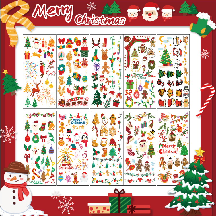 国境を越えた新しい子供の漫画クリスマスタトゥーステッカー防水ヨーロッパとアメリカの新年パーティーフェイストンネントステッカー