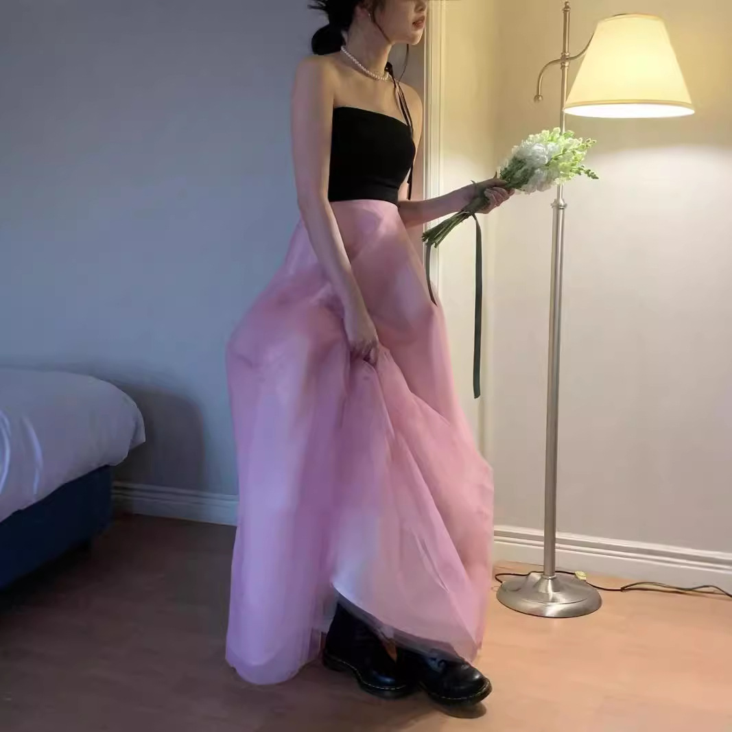 韓国シック2025春夏新作フレンチジェントルスタイルライトラグジュアリーワンショルダーデザインノースリーブロングドレス