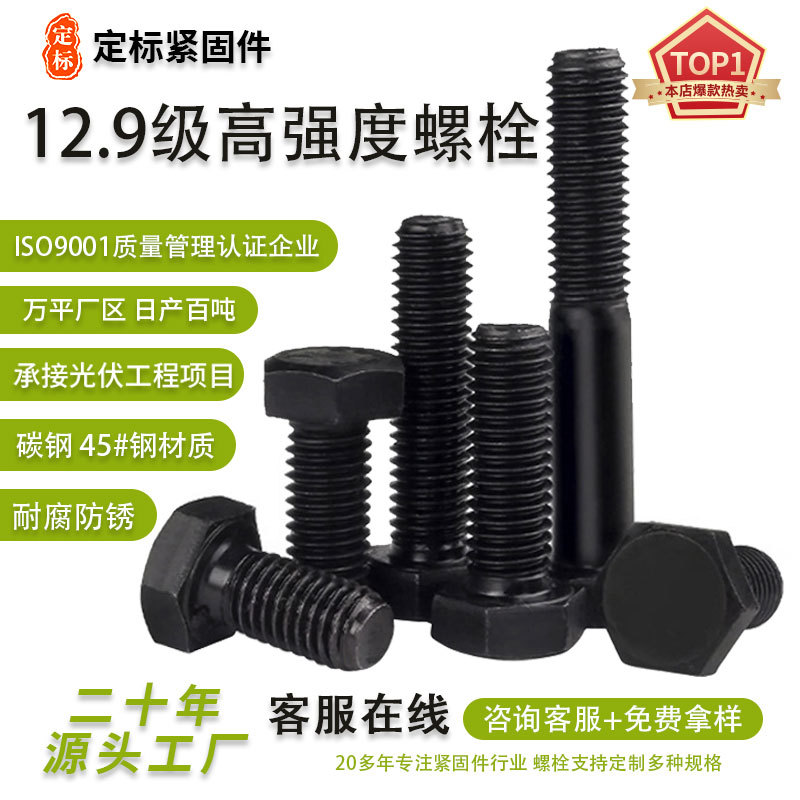 12.9段高強度外六角ねじ酸化黒髪ボルト高強度スクリュー外六角高強度ボルト