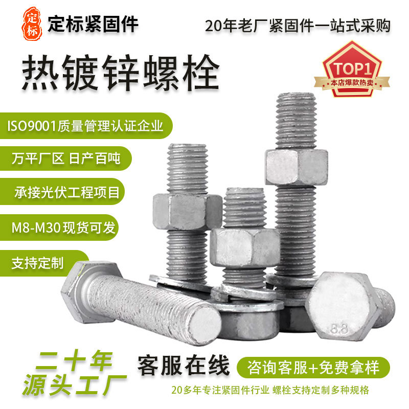 溶融亜鉛めっきボルトgb5783電力光起電外六角ねじ8.8級8.9級亜鉛めっき高強度ボルト