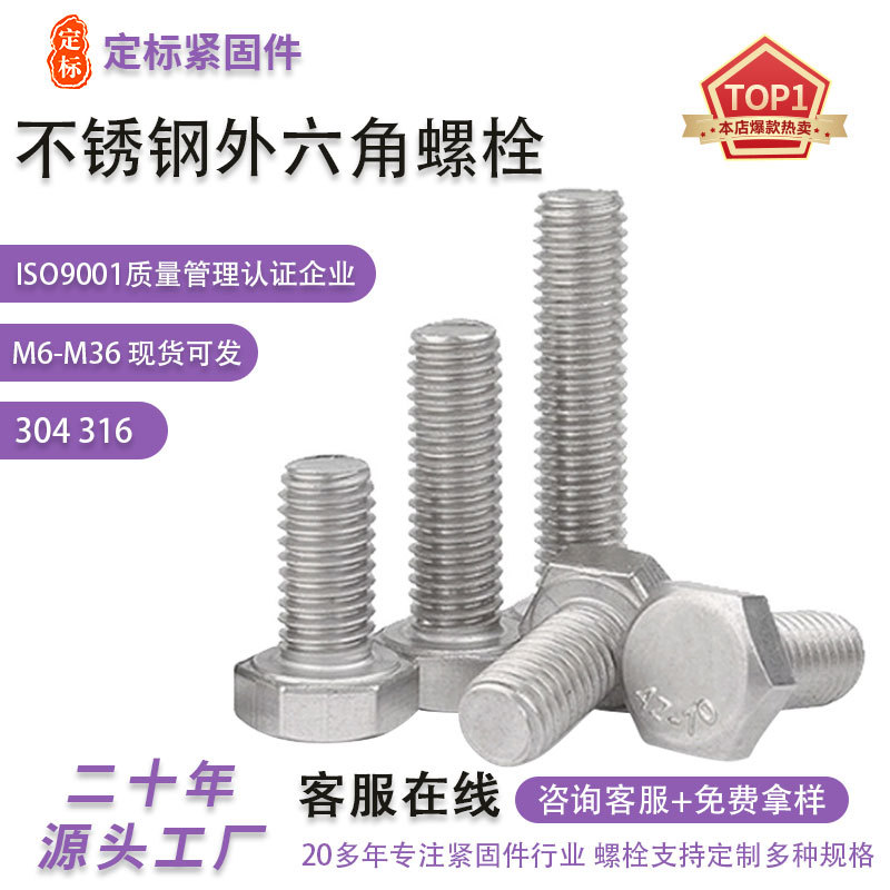 ステンレス鋼外側六角ボルト 201 304 316 ネジ DIN933 外側六角ネジ