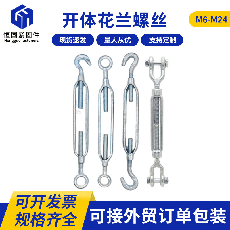 开体花兰螺丝花篮螺栓拉紧器碳钢镀锌花兰螺杆CC型CO型开体花兰