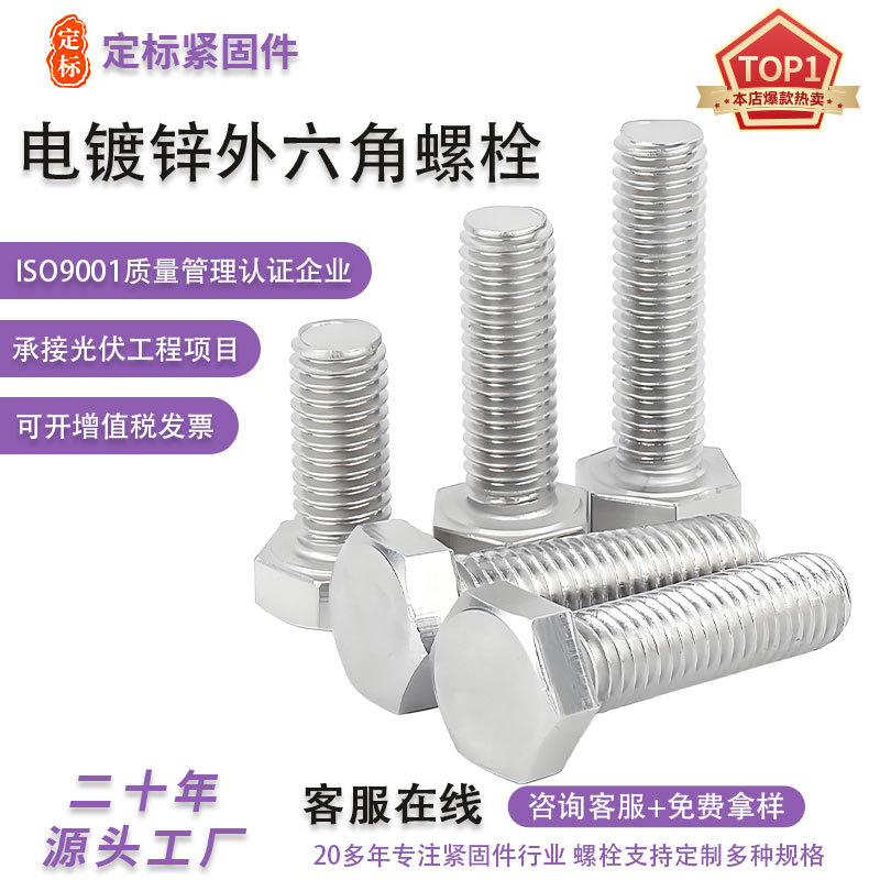 4.8級外六角ねじ電気亜鉛メッキ白亜鉛ボルト全歯六角ねじm8m10m12m16m20