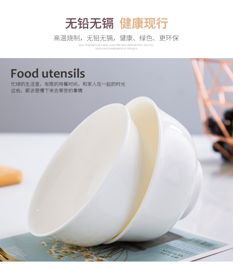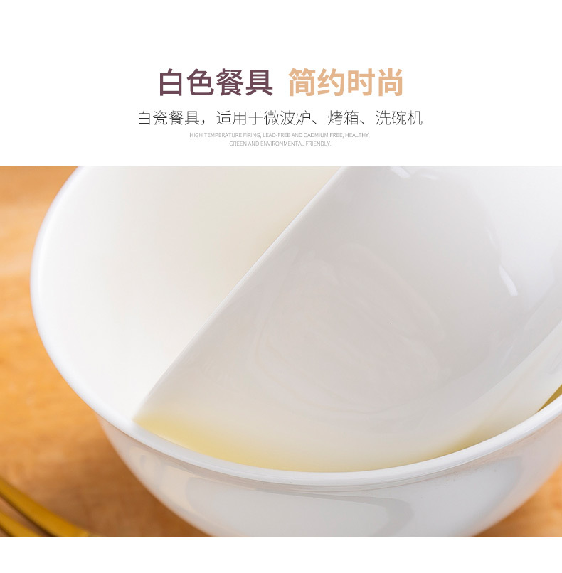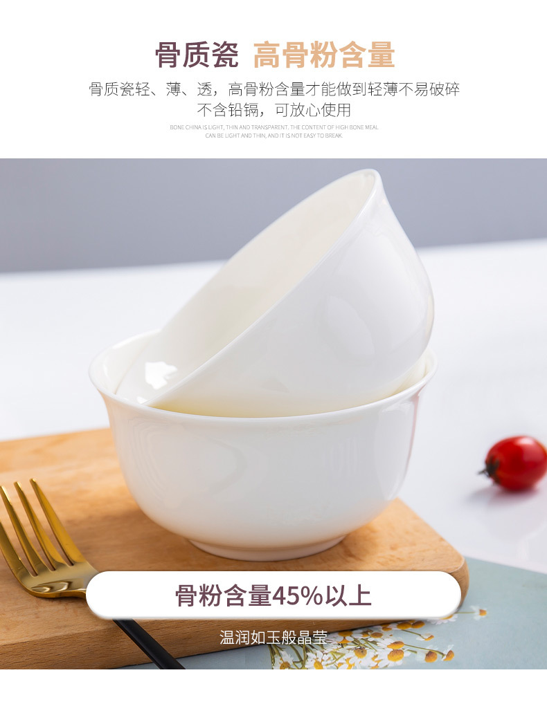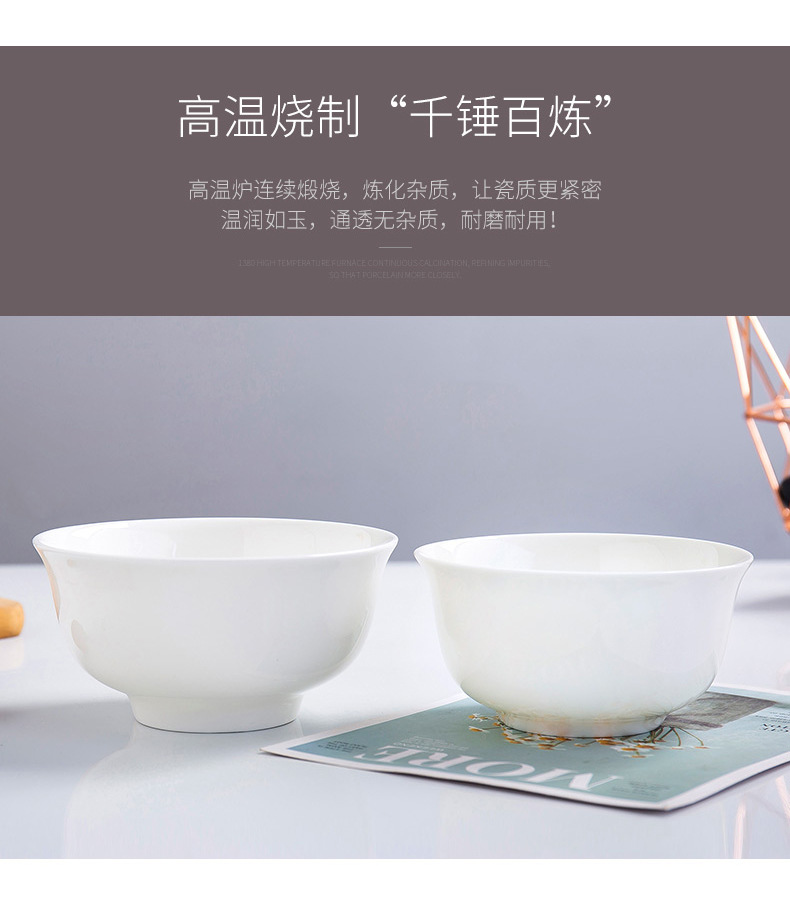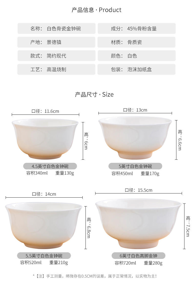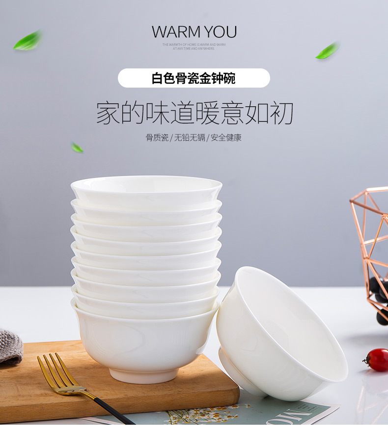 北欧風の骨磁器の飯椀、景徳鎮の高級純白の高足耐熱金鐘椀、シンプルな中国風の食器