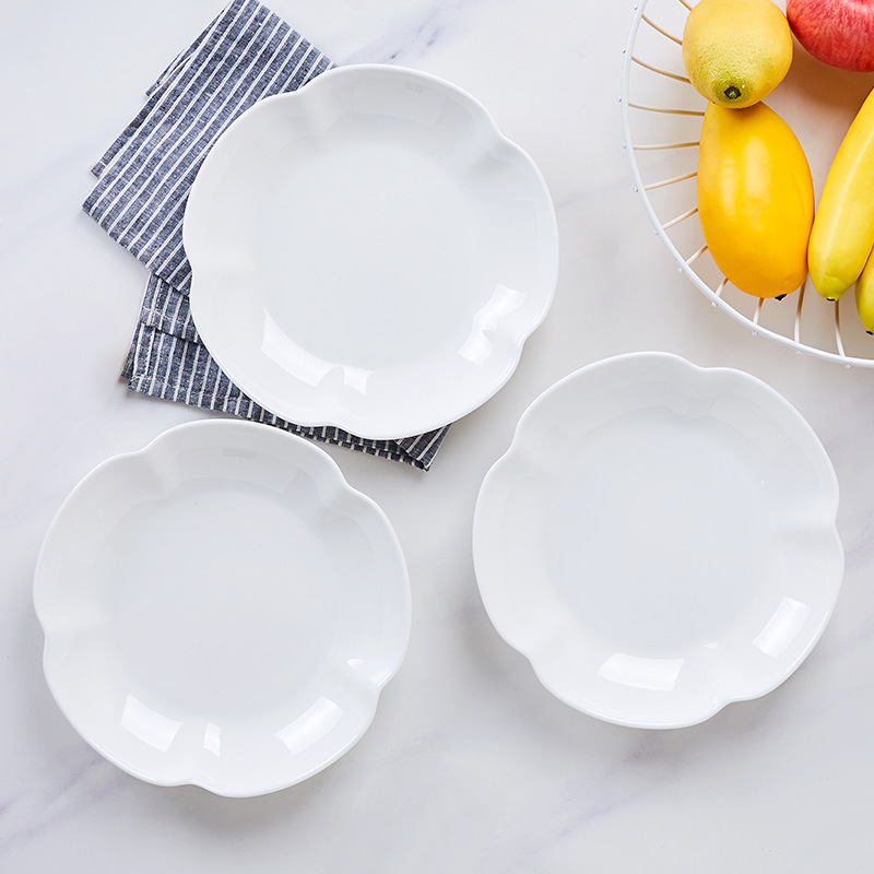 ヨーロッパ式創意陶磁器皿骨質磁器純白花弁皿日本式深層料理皿スープ皿新型レストランサラダ皿