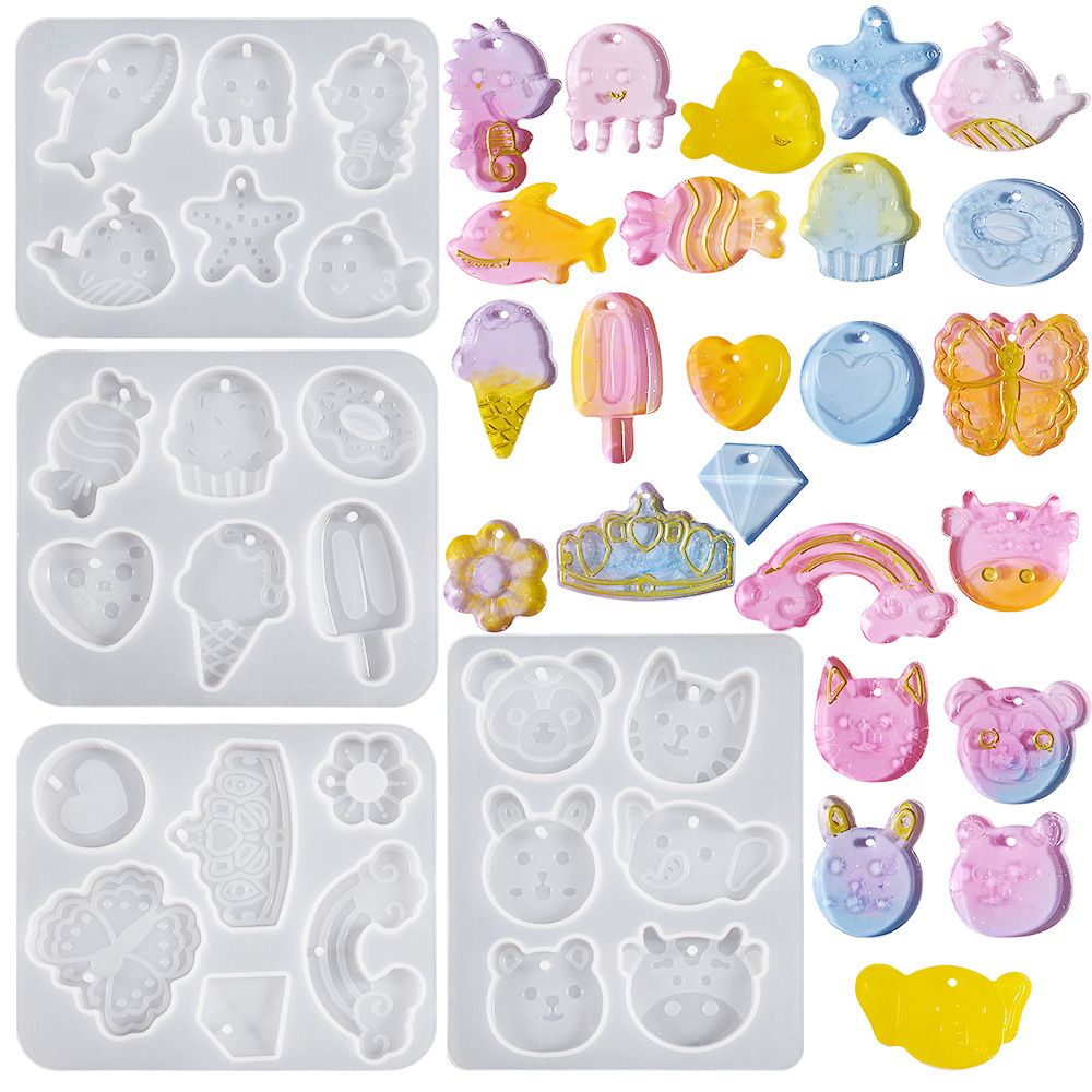 虞美人diy水晶滴ゴム海洋動物キャンディーアイスクリーム虹蝶ペンダントキーホルダーシリコン金型