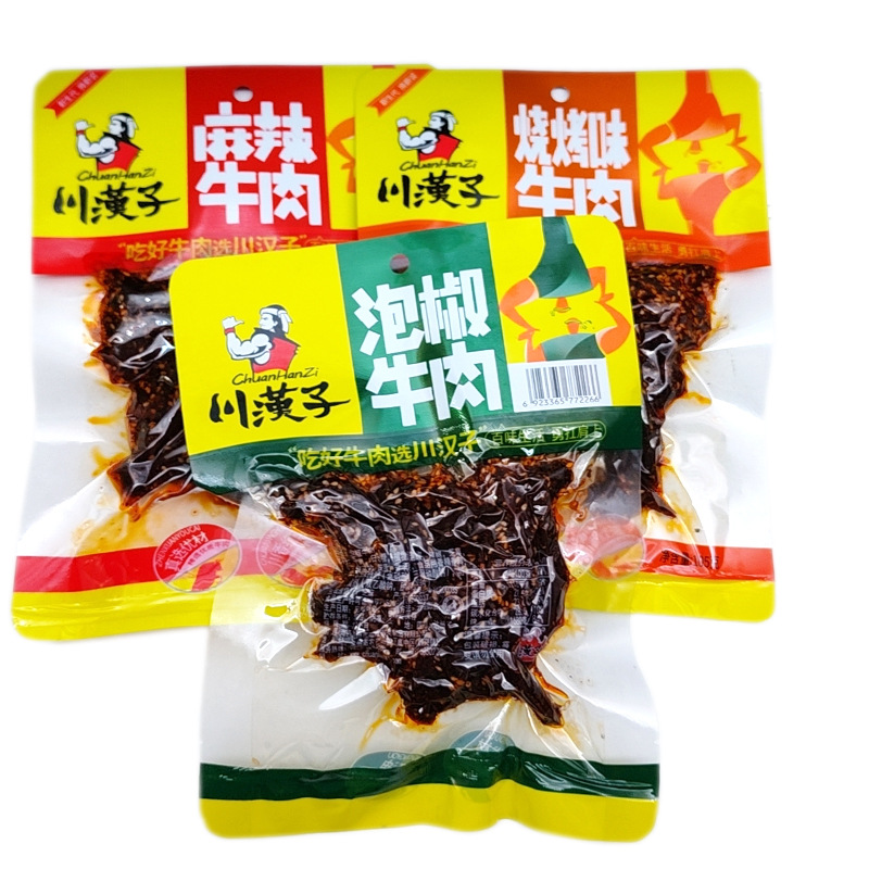 川の男の50gのスパイシーな牛肉/ピーマンの牛肉/バーベキューの牛肉のインスタントスナックの卸売り