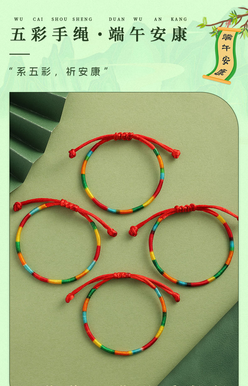 端午節カラフルなロープブレスレットシンプルなカラフルなハンドロープ露店景勝地イベント小さなギフトシングルビーズ赤いロープ卸売