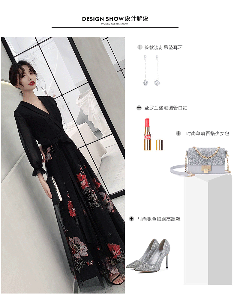 黒のイブニングドレス2025新作冬エレガントでスリムな気質を持つ社交界の年次総会司会者向けロングドレス