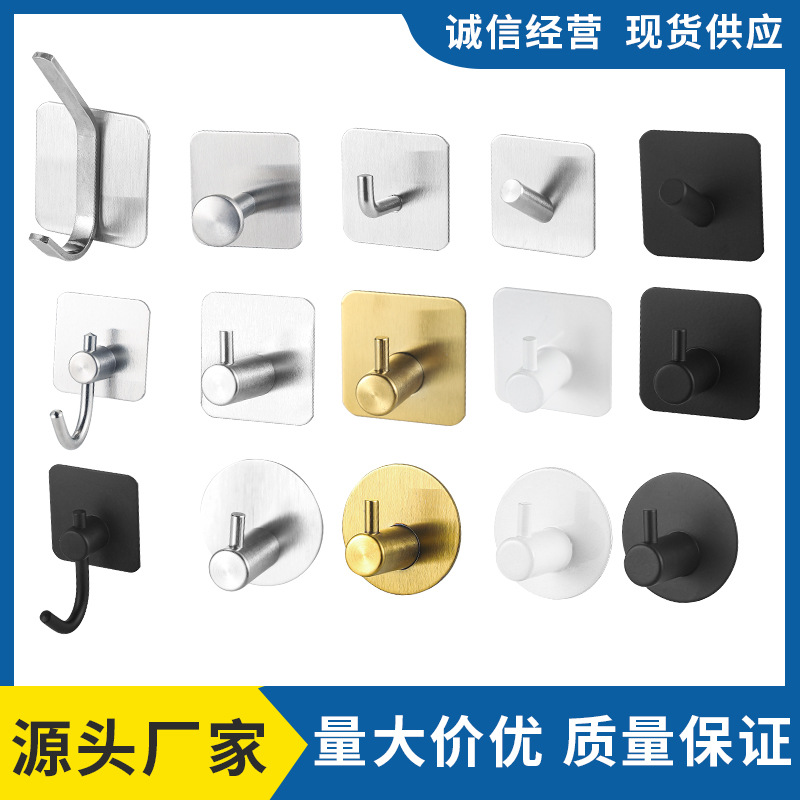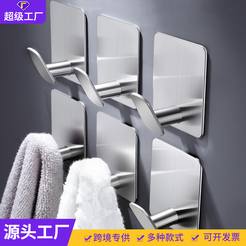 跨境不锈钢免打孔挂钩门后挂钩厨房浴室金属衣帽钩强力粘胶单钩