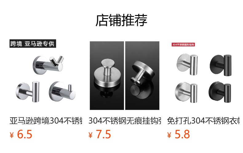 跨境加厚不锈钢单钩挂钩免打孔浴室厨房门后金属衣帽钩多用途收纳