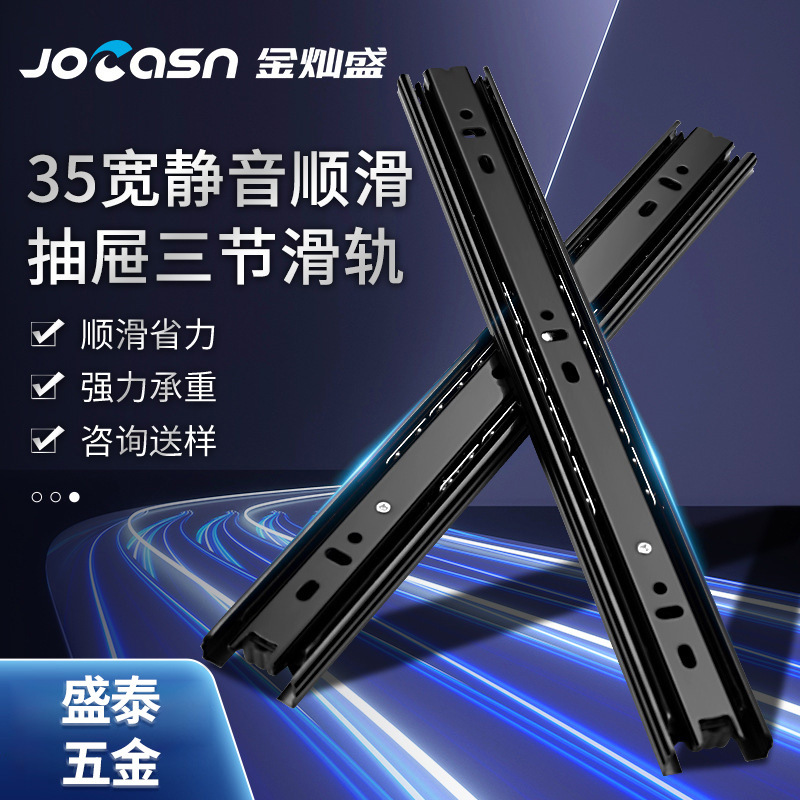 35幅スライドレール厚手静音引き出しレール戸棚冷間圧延鋼側にスライド三節鋼珠レールを取り付ける