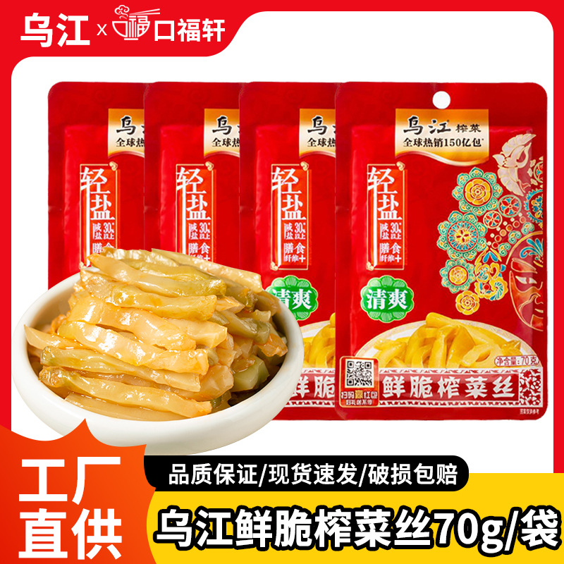 乌江榨菜丝70g袋装轻盐涪陵榨菜清淡开味下饭菜咸一整箱批发分销