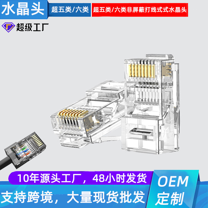 熱売超六類七類八類シールド無圧水晶ヘッドモジュール無工具圧着ケーブル水晶ヘッド
