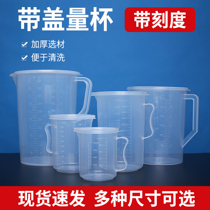 塑料透明清晰量杯实验室计量杯量桶2000ml透明奶茶商用带盖量杯