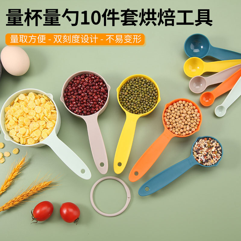 工場直送 カラフル10点セット プラスチック計量カップ 計量スプーン 大容量 製菓道具 計量スプーン 計量器 度付き 輸出向け