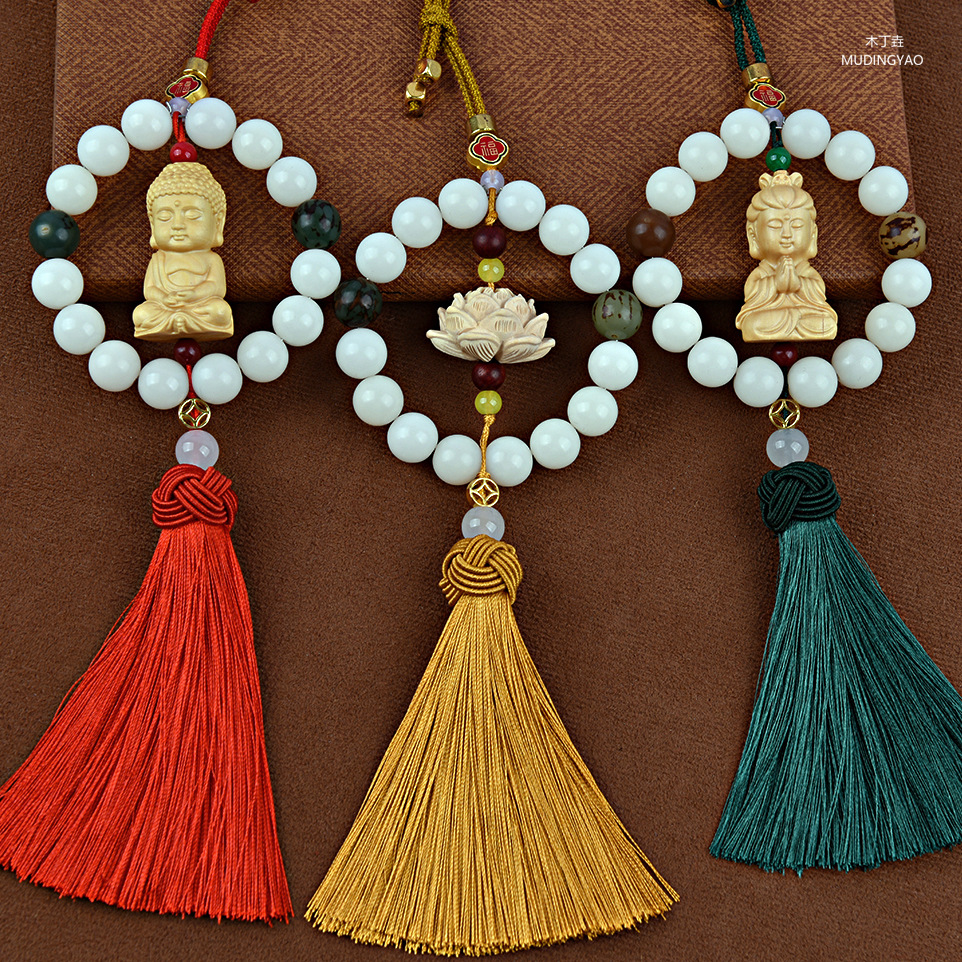 25款黄杨木小佛汽车挂件车内饰品后视镜白玉菩提高档车载挂饰批发