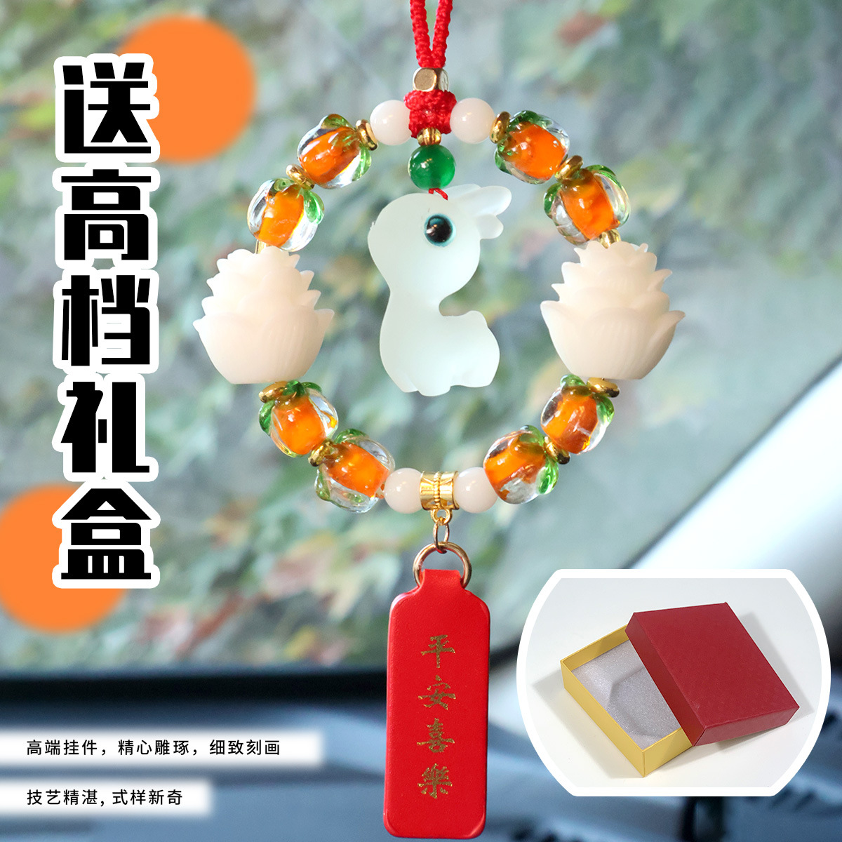 好柿连连车内挂饰车载好物后视镜吊坠平安喜乐高档车挂件夜光小鹿