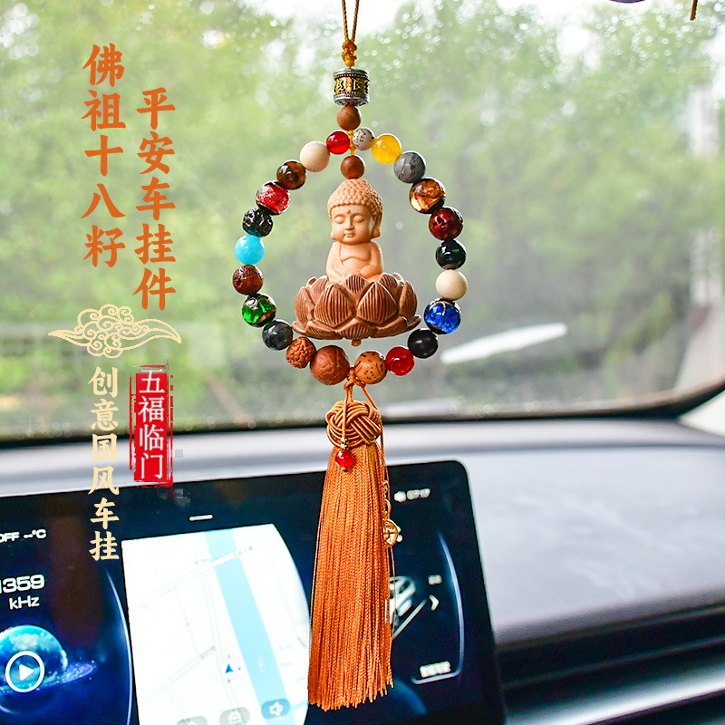 【汽车挂件】桃木汽车后视镜挂件车载十八籽莲花小佛平安男士车挂