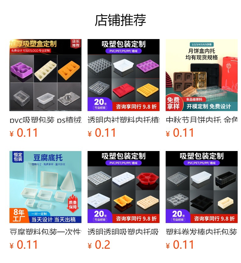PVCフロスト吸塑インレイ PET吸塑インレイ PS植毛吸塑トレイ PP吸塑ボックス包装