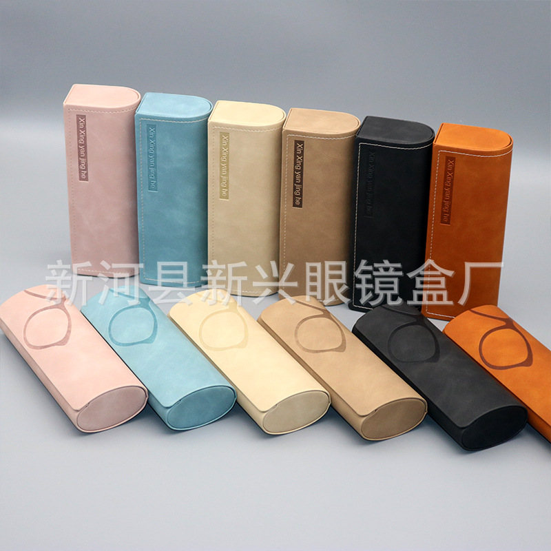 新款压变高级感皮质手工眼镜盒 太阳镜近视镜盒 厂家批发可印logo