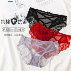 电商爆款内裤女蕾丝低腰少女火辣镂空性感网纱透明纯棉裆三角裤头