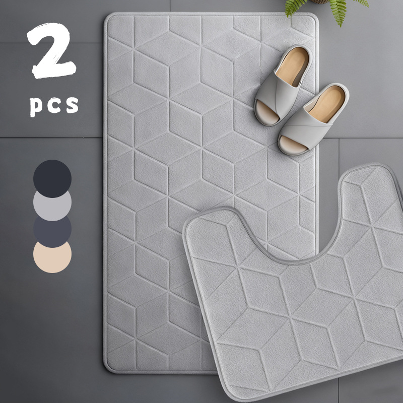 アマゾン玄関マット コーラルベルベット エンボス加工 ひし形 バスマット 2点セット 吸水性 滑り止め 足拭きマット
