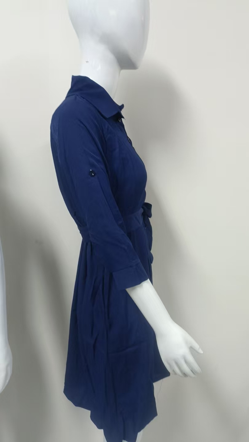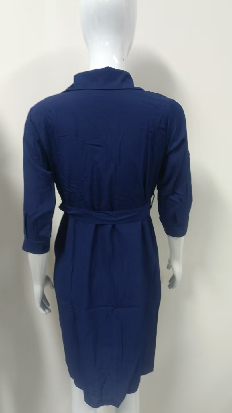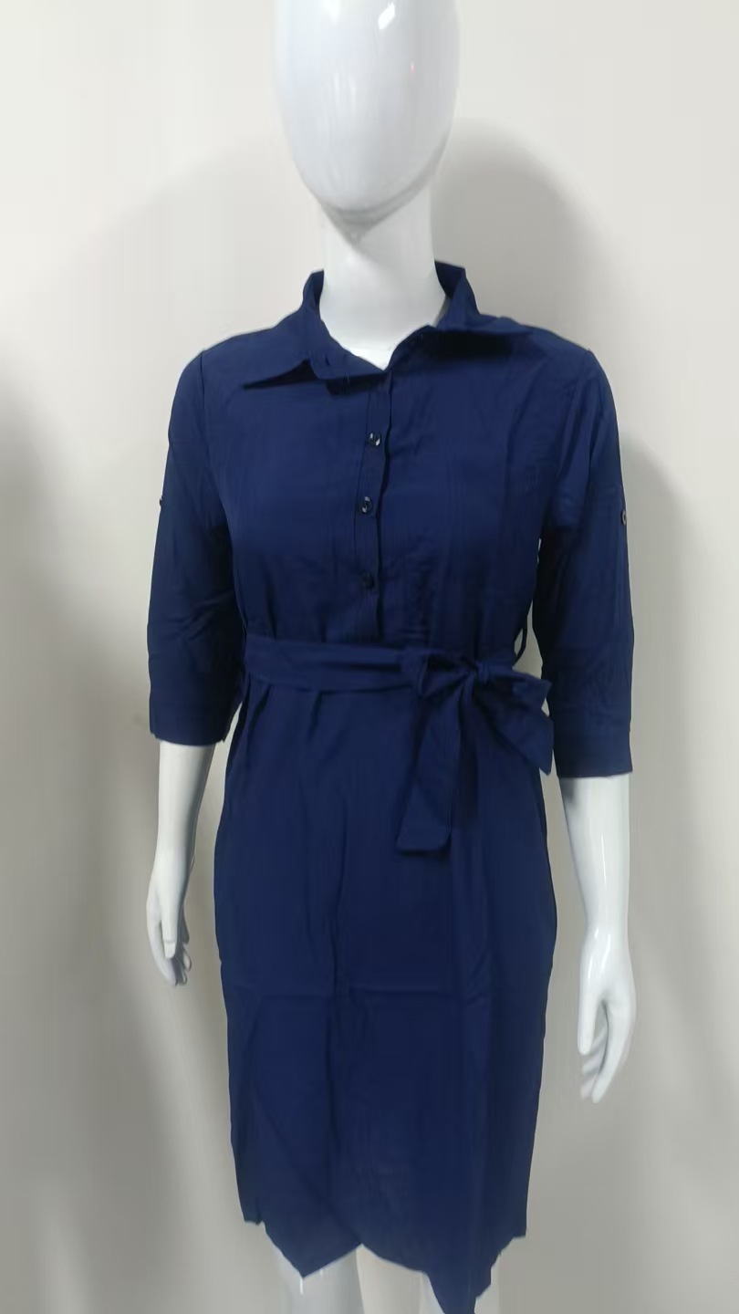 eBay、Amazon、wishで販売されている、襟付き無地七分袖シャツワンピース、スリムフィット、ペンシルスカート、ファッショナブルで上品な雰囲気