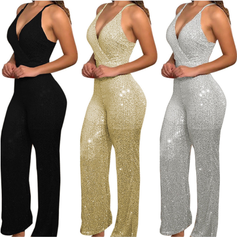 2023年欧米で人気沸騰中のカジュアルファッションレディースセクシータイトフィットキャミソールスパンコールVネックスリムフィットワンピース