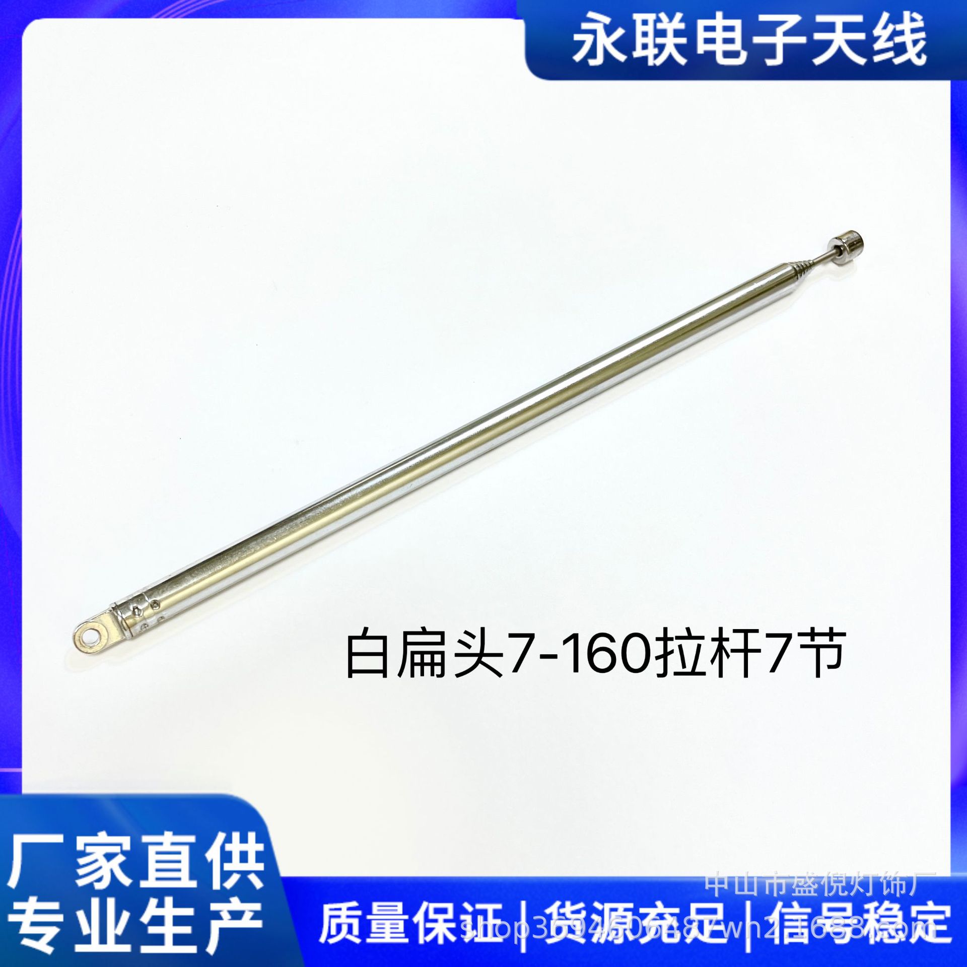本公司拥有十几年的生产经验,有一批专业技术人员,并不断引进先进的检测设备和生产设备,从而确保产品性能与品质,可根据客户的要求研制生产各种拉杆天线、通讯天线、五金零件,和玩具厂、收录机厂、电视机厂、手机厂、汽车厂、工艺品厂、灯具厂等企业配套。