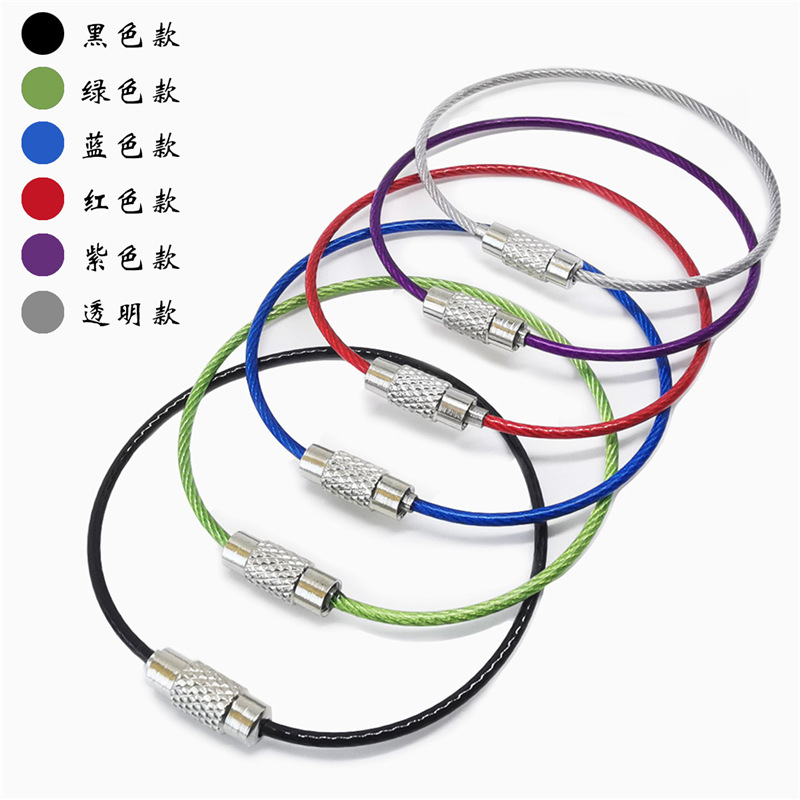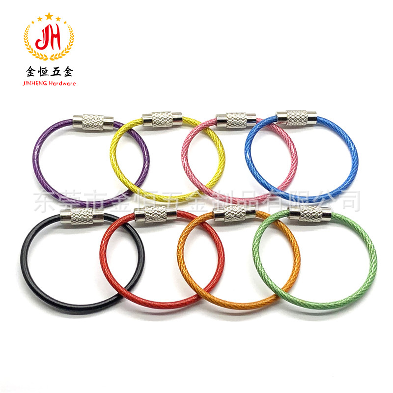 メーカーステンレス鋼ワイヤーリング金色ワイヤロープカラー塗装ワイヤーリングキーホルダー環境保護ゴムロープ